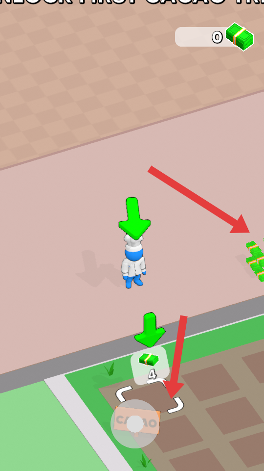 1、游戲開始,操控角色前往指定區域,那里有可用于種植的地塊,準備進行可可樹的種植,開啟巧克力制作的第一步。