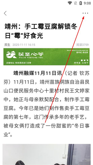3、進入文章詳情頁面閱讀文章內容了解具體信息,獲取資訊中的關鍵內容,點擊右上角的三個點按鈕分享。