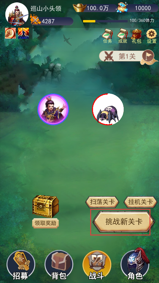 1、點擊挑戰新關卡,進入戰斗場景,與敵人展開對決,運用策略指揮武將作戰。