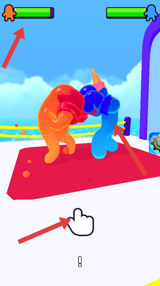 3、到達特定區域后,會與藍色果凍人展開拳擊對決,需操控角色出拳,注意雙方血量,努力擊敗對手。