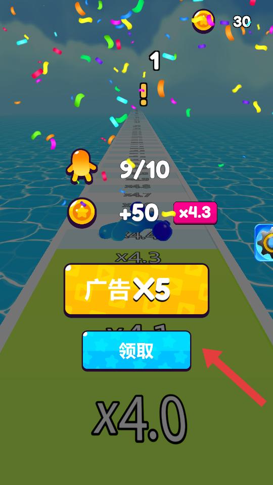 4、完成關卡后,會獲得金幣等獎勵,可選擇看廣告乘以5倍獎勵,也能直接點擊領取,獲取相應獎勵。