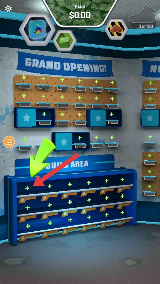 1、進入游戲,來到GRAND OPENING的工坊場景,可在BUILD AREA等區域,準備挑選部件定制球鞋。