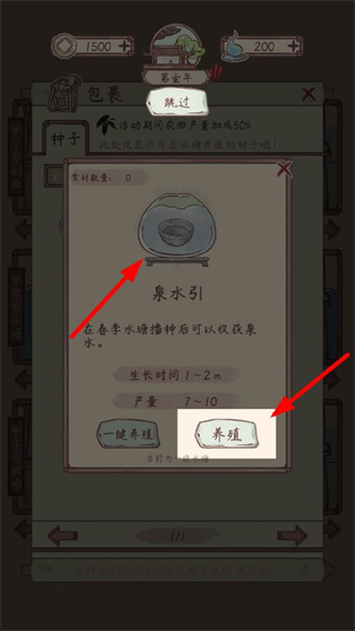 2、在水塘養殖泉水引,春季播種后可收獲泉水,通過養殖操作積累水資源,為經營提供支持。