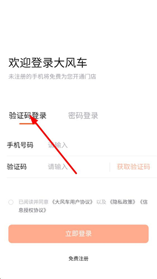 1、進入登錄頁面選擇驗證碼登錄,輸入手機號碼后獲取驗證碼,勾選相關協議,點擊立即登錄即可完成賬號登錄操作。