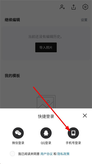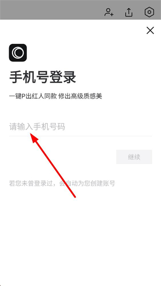 4、進入手機號登錄界面,需輸入手機號碼,點擊繼續按鈕,完成登錄后可使用我的模板等相關功能。