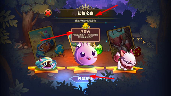 1、初始之森可選擇初始寵物,如洋蔥頭等,選擇后點擊開始旅程,開啟寵物冒險之旅。