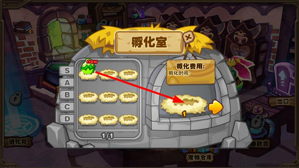 2、在孵化室孵化寵物,選擇孵化位置,消耗資源進行孵化,獲得可愛的新寵物。