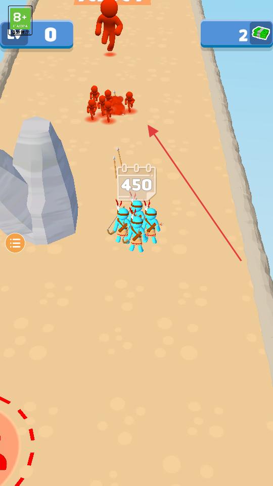 2、操控增強后的藍色小人軍團前進,與紅色敵人軍團相遇時,指揮軍團發起攻擊,利用人數優勢和提升的能力,擊敗紅色敵人。