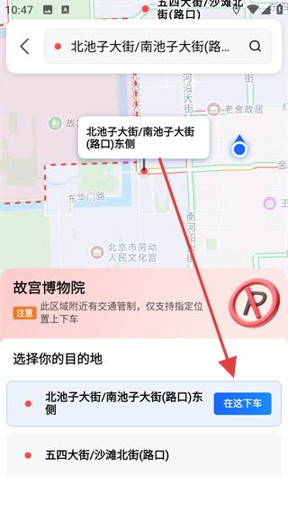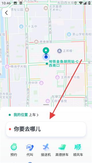 2、進入打車頁面在你要去哪兒輸入框中輸入目的地,如北池子大街,南池子大街路口東側。