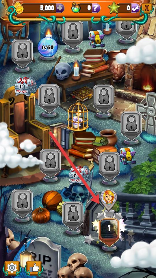 1、點擊第1關進入Level1的關卡準備界面,留意界面中的金幣、道具等元素,為后續消除操作做準備。