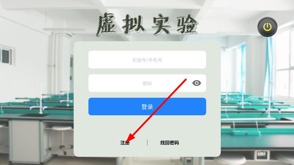 1、進入虛擬實驗的登錄界面,需輸入實驗號、手機號及密碼完成登錄,也可點擊注冊或找回密碼,分別進行賬號注冊或密碼找回操作。