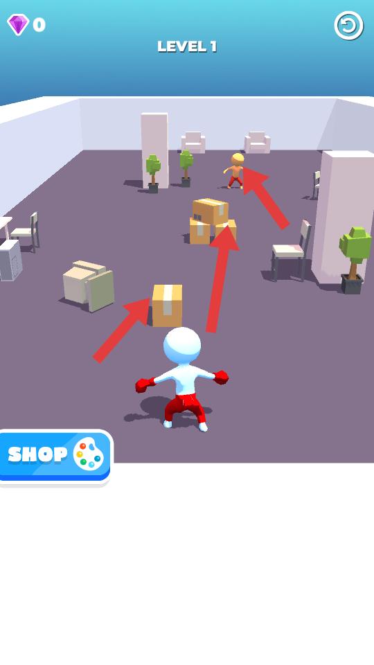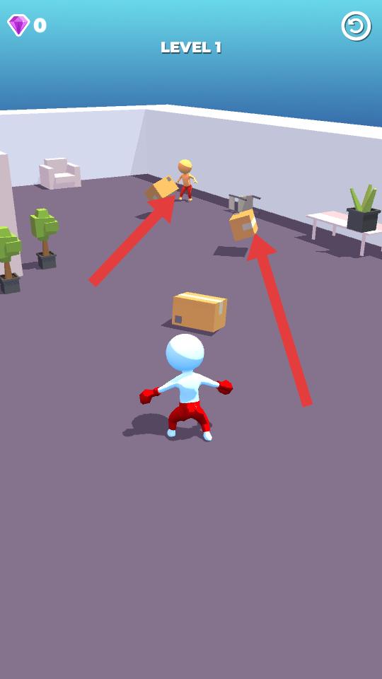 3、持續用箱子攻擊敵人,敵人被多次擊中后,會倒地,這時候敵人就失去了行動能力,離勝利更近一步。