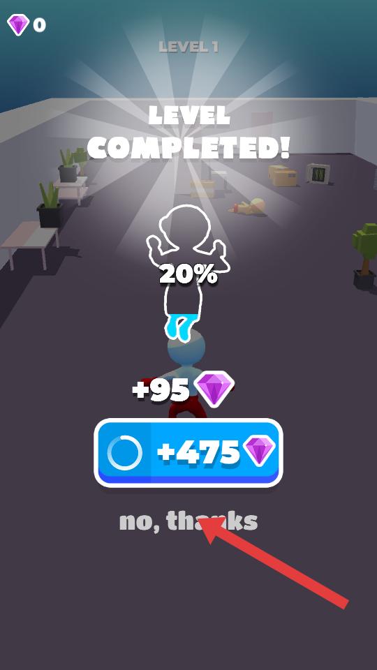 4、成功擊敗敵人后,界面會顯示通過關卡,還能獲得鉆石獎勵,此時可點擊不了謝謝,結束當前關卡。