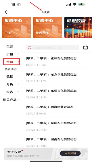 3、甲苯資訊板塊有價格中心功能,展示裝置動態快訊,涵蓋多家企業裝置信息,呈現甲苯產業動態。