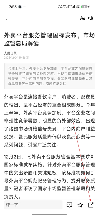 3、點擊目標資訊進入詳情頁,閱讀資訊的具體內容,了解相關事件的信息,點擊下方的分享按鈕。
