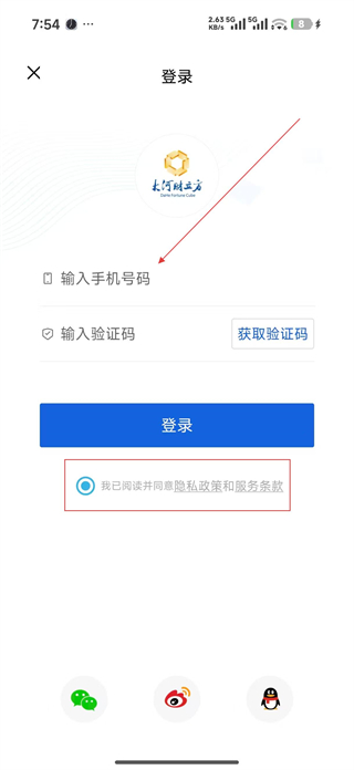1、進入登錄頁面,在輸入手機號碼框填寫對應號碼,點擊獲取驗證碼并填入輸入驗證碼框,勾選已閱讀相關政策的選項,再點擊登錄按鈕完成登錄。