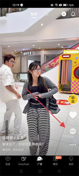 1、打開軟件進入廣場板塊,可瀏覽推薦的視頻內容,如被誤會的情景視頻,點擊評論按鈕,進入評論區查看其他用戶的評論。
