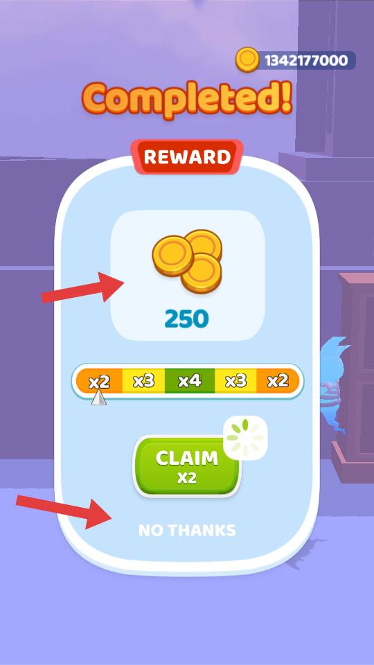 4、完成任務后,會獲得250金幣獎勵,可選擇翻倍領取獎勵,也能點擊NO THANKS直接領取。
