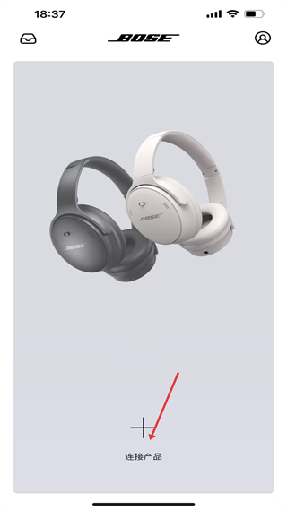 2、應用主界面,點擊連接產品,可開始添加你的Bose設備,界面展示了Bose耳機產品。