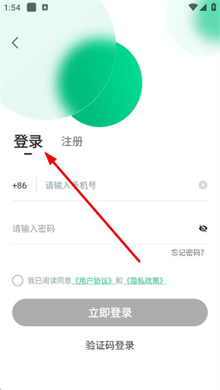 3、登錄界面,輸入手機號和密碼,勾選同意用戶協議和隱私政策后點擊立即登錄,若忘記密碼可進行重置,也可選擇驗證碼登錄。
