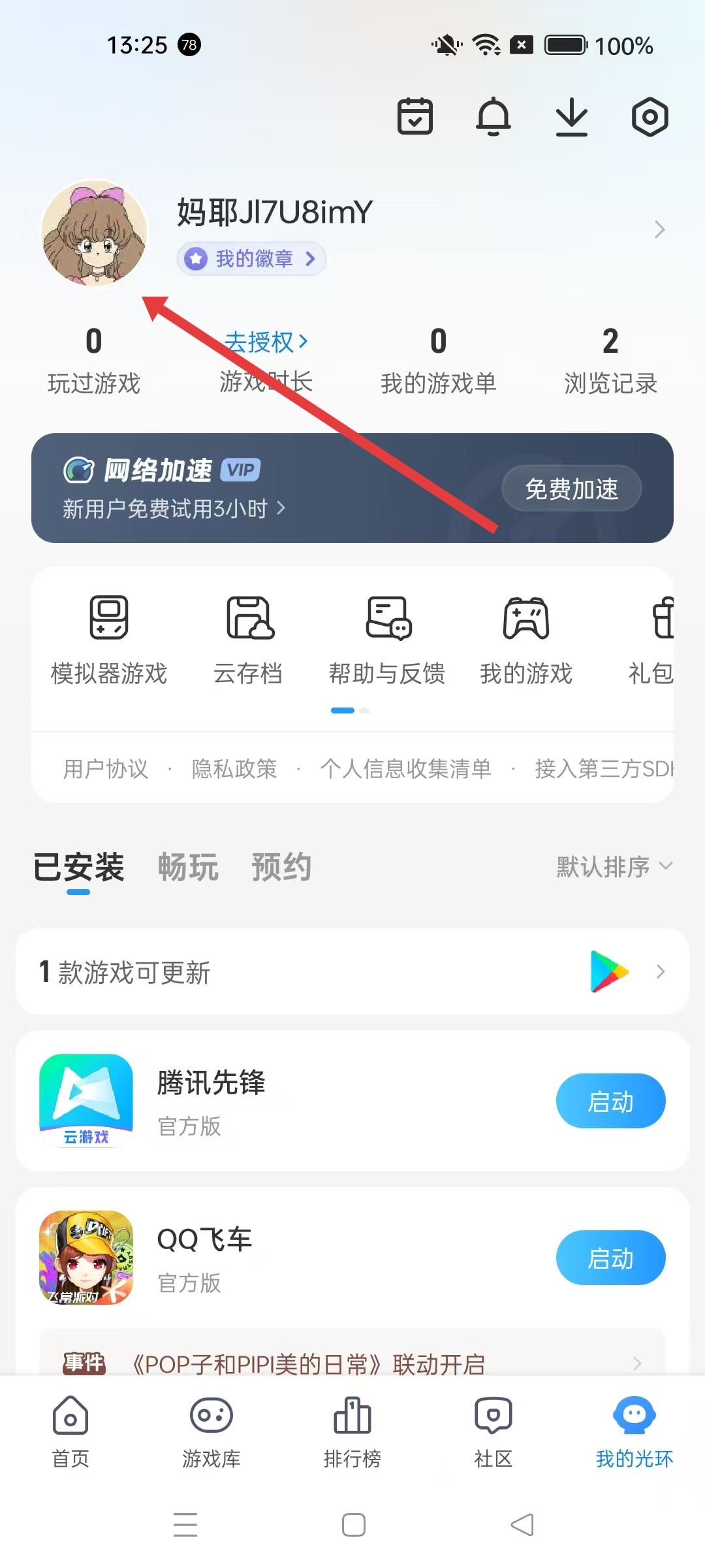 2、進入我的光環界面,可看到個人信息、玩過游戲等數據,還有模擬器游戲、云存檔等功能入口,點擊模擬器游戲進入相關頁面。