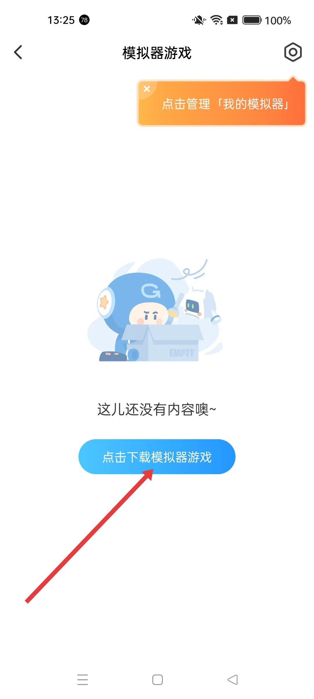 3、模擬器游戲頁面,若暫無內容,可點擊下載模擬器游戲按鈕,進入模擬器游戲列表頁面,準備選擇游戲進行下載。