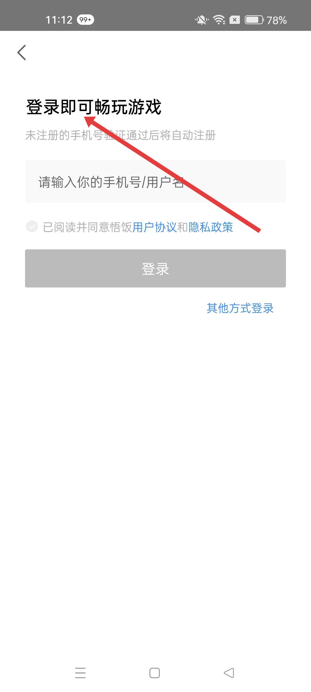 3、登錄頁面,輸入手機號、用戶名,勾選已閱讀并同意用戶協議和隱私政策,點擊登錄,或選擇其他方式登錄。