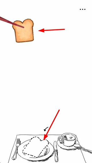 1、看到筷子夾著面包,下方餐盤有對應輪廓,操控筷子將面包移動到餐盤的輪廓位置,完成面包的擺盤操作推進關卡。