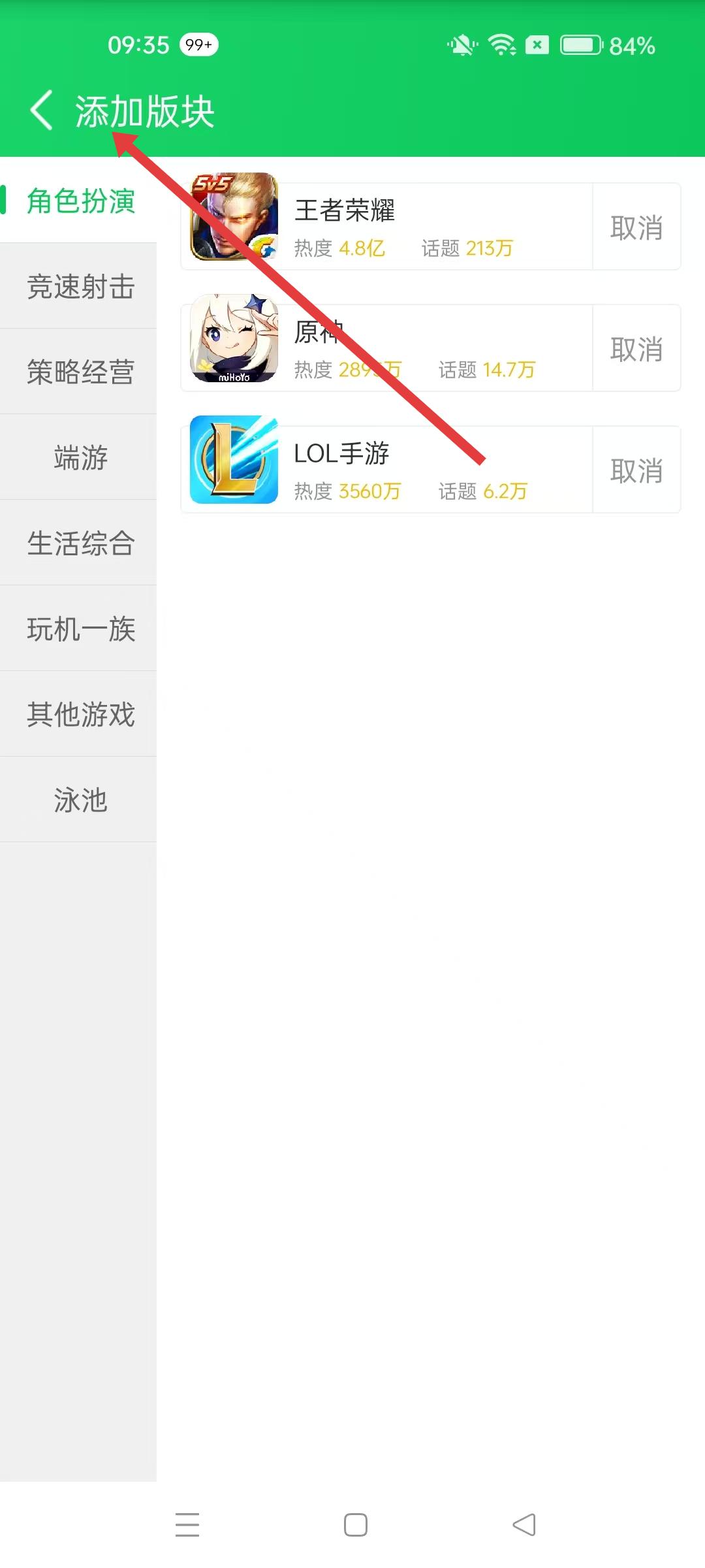 2、社區中可進入添加版塊頁面,選擇角色扮演、競速射擊等分類,添加如王者榮耀、原神等感興趣的游戲板塊。