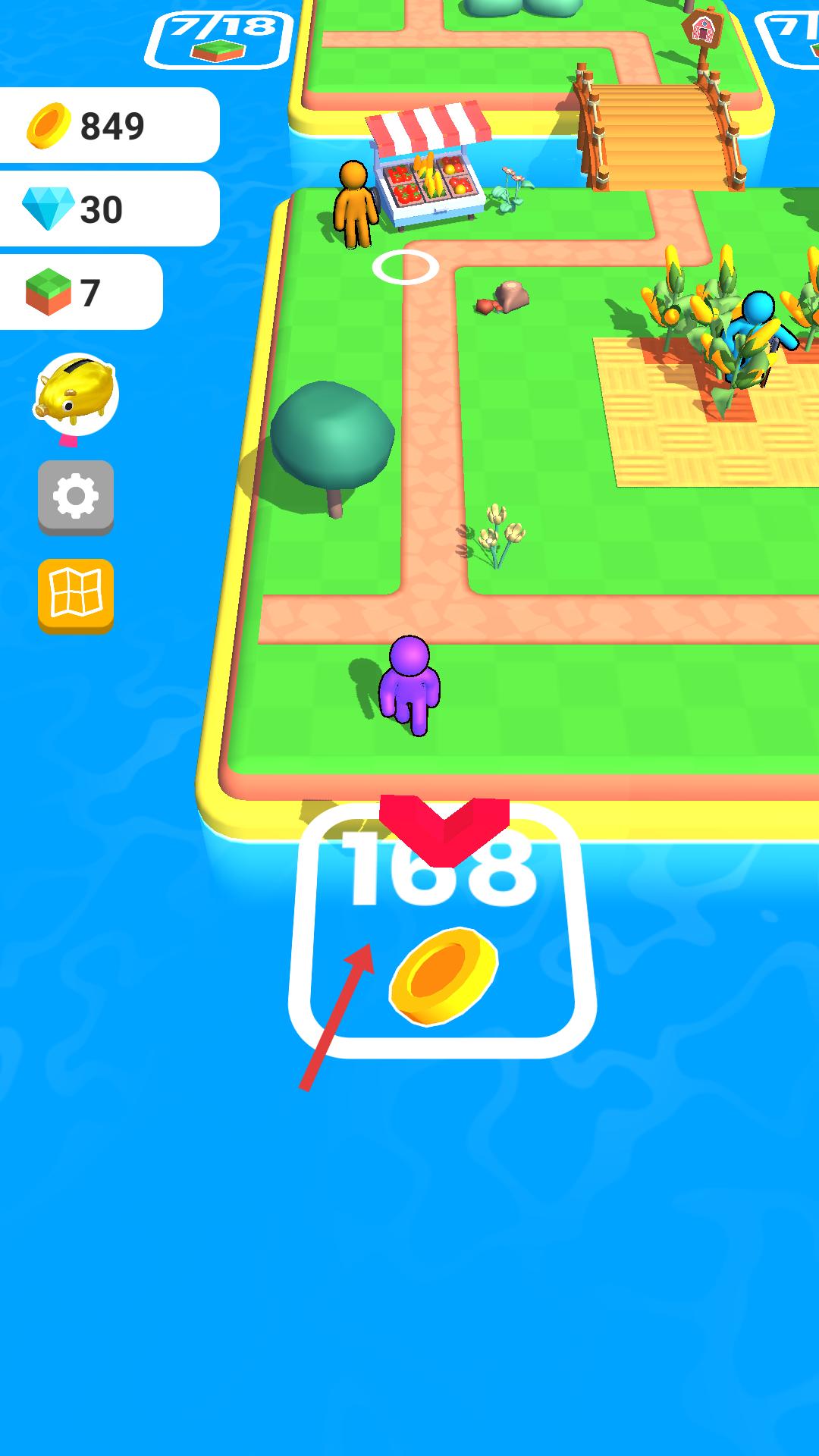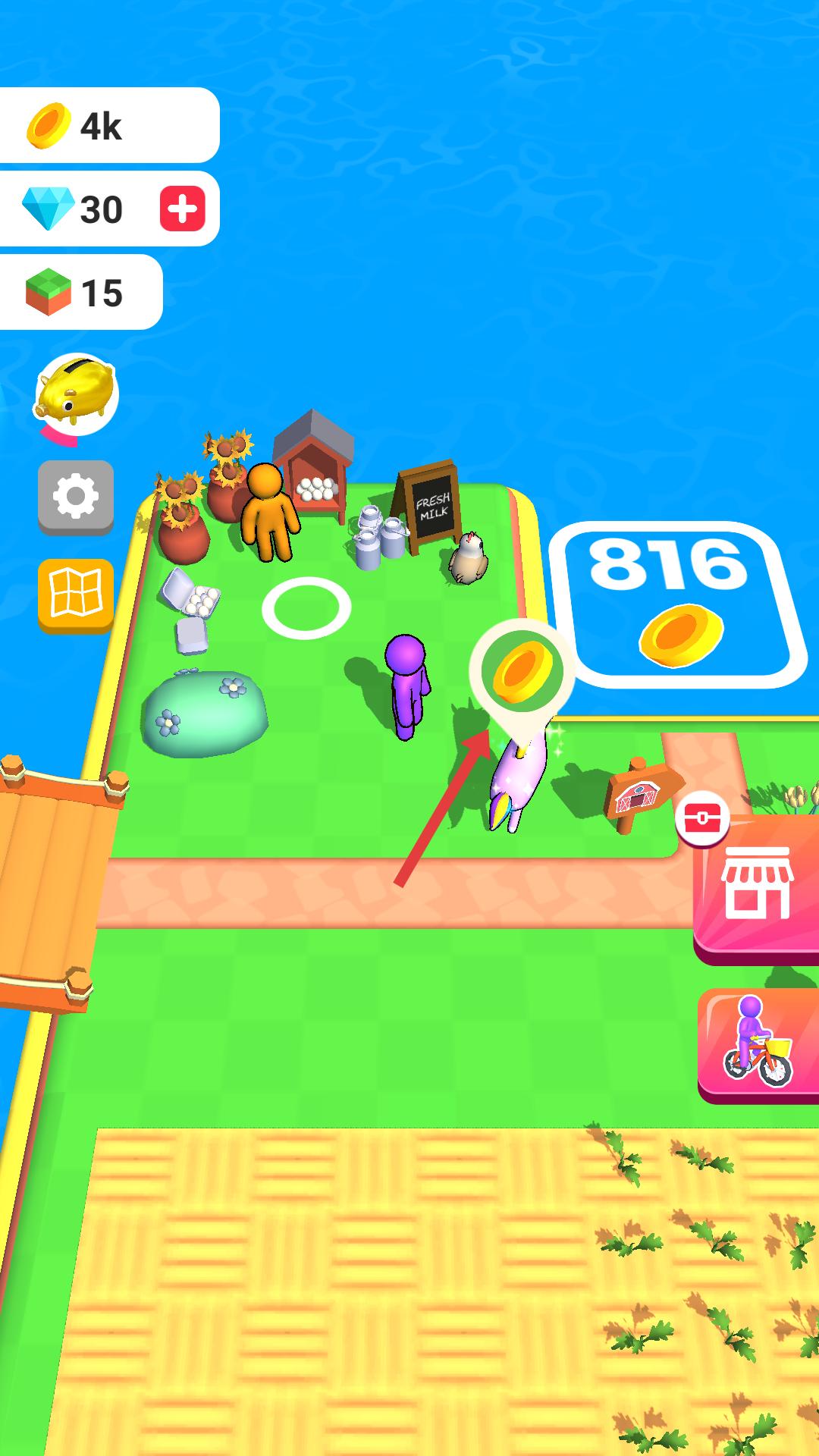 4、在有雞蛋、牛奶等物品的區域,靠近帶有金幣標識的角色,與之交互可獲得金幣,積累金幣可用于農場的各類升級與建設。