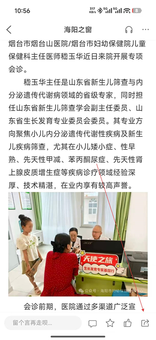3、在資訊詳情頁面閱讀專家介紹和會診相關內容,了解此次專項會診的具體信息,點擊下方的分享按鈕。