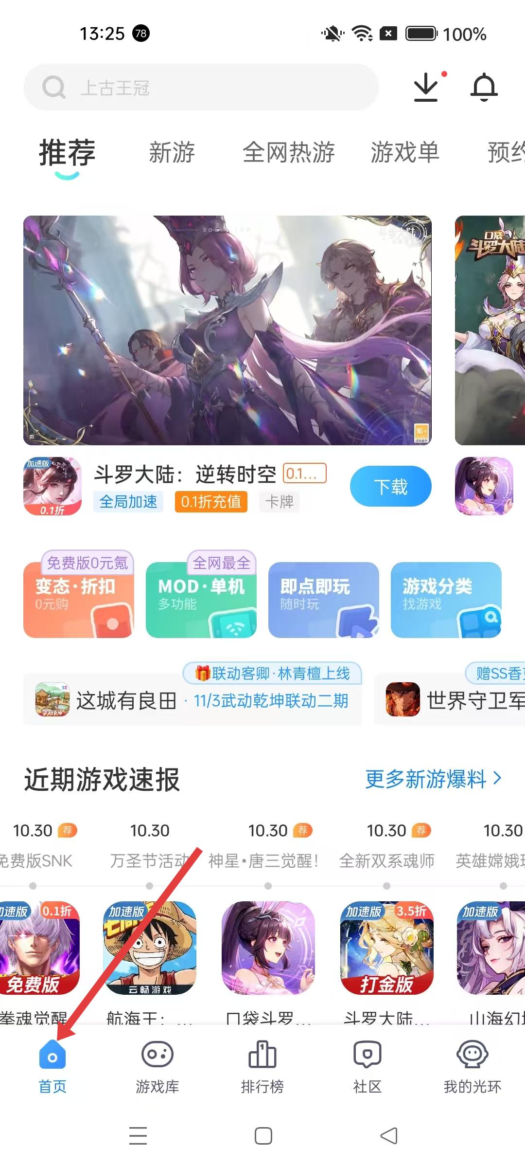 3、簽到完成后,可點擊去首頁看看,返回首頁后,再進入社區板塊,瀏覽推薦的游戲資訊、攻略等內容,了解游戲動態。