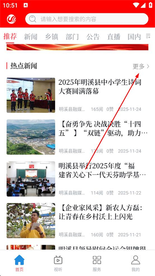 1、打開明溪在線進入首頁,瀏覽熱點新聞板塊,找到目標資訊標題,點擊對應的資訊條目,進入該資訊的詳情頁面,查看完整內容與相關信息。