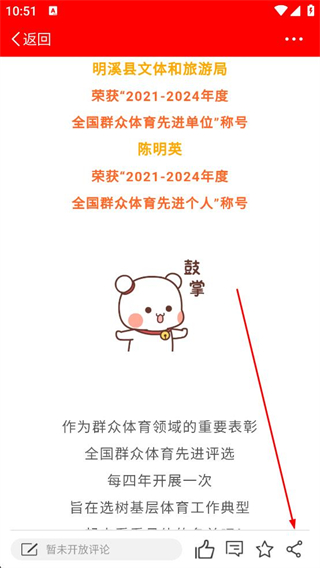 2、在資訊詳情頁面中找到喜報相關內容區域,向下滑動頁面,瀏覽更多關于獲獎單位和個人的介紹,了解評選周期及活動目的等信息。