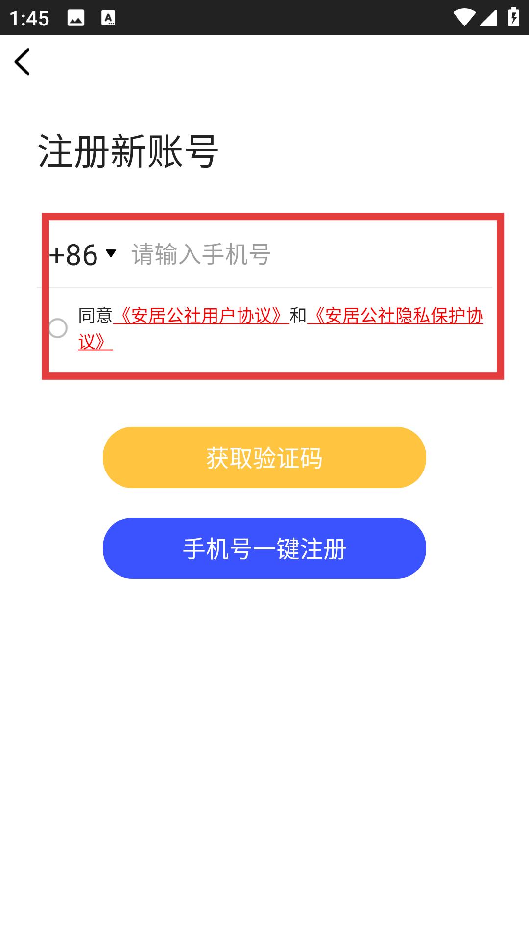 1、進入注冊頁,輸入手機號勾選協議,點擊獲取驗證碼,完成手機號一鍵注冊流程。
