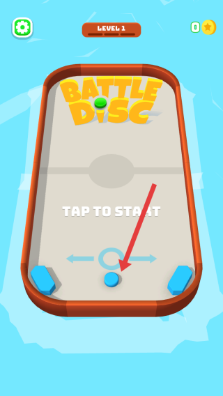 1、進入游戲第一關,看到場地中間有藍色圓盤,屏幕顯示TAPTOSTART,點擊即可讓藍色圓盤開始移動,開啟游戲。