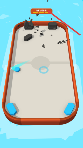 4、進入第二關,場地內有更多黑色障礙物,操控藍色圓盤撞擊它們,使其破碎,繼續新關卡中闖關。