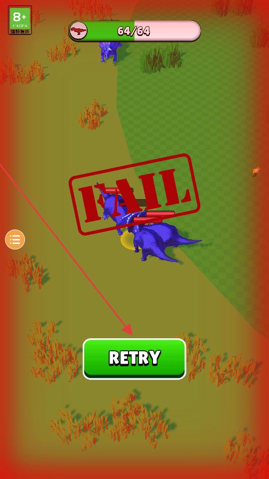 4、若戰斗失敗,點擊下方的重試按鈕,重新開始游戲再次挑戰恐龍,爭取成功生存并完成目標。