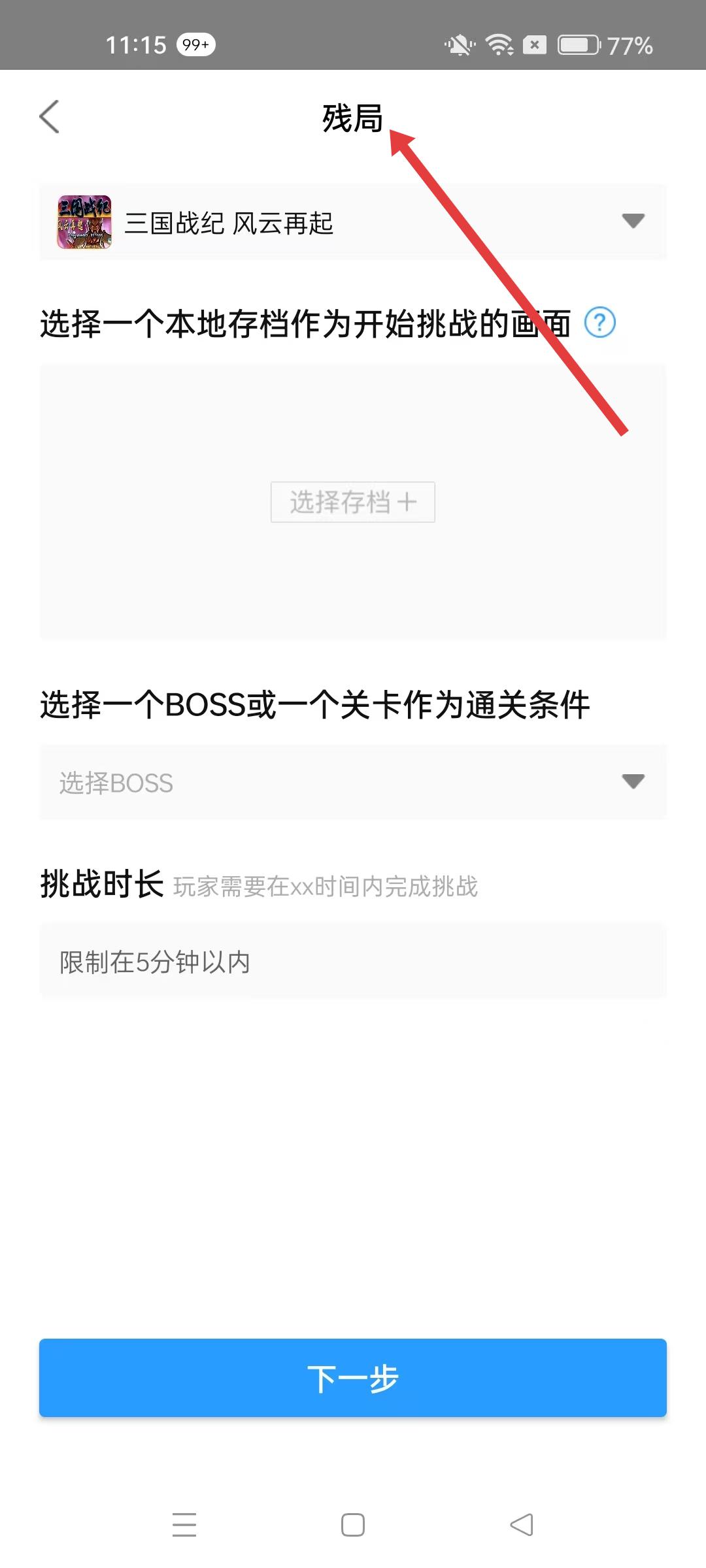 4、進入殘局創建界面,可選擇本地存檔、BOSS或關卡以及挑戰時長等條件,創建個性化的殘局挑戰,豐富游戲體驗。
