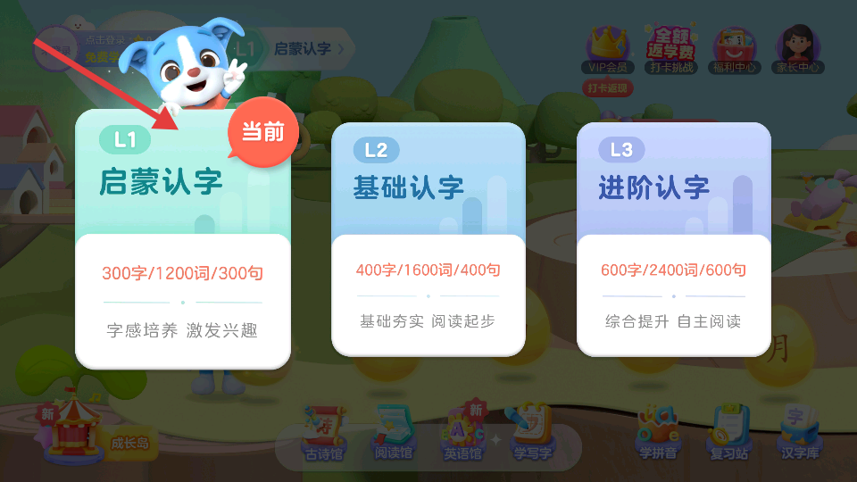 2、識字課程科學分級,啟蒙識字處于L1階段,聚焦字感培養與興趣激發,涵蓋300字1200詞300句為識字奠基。