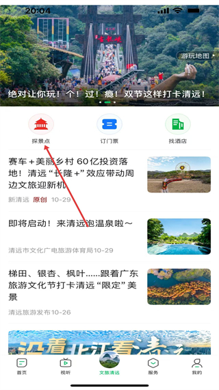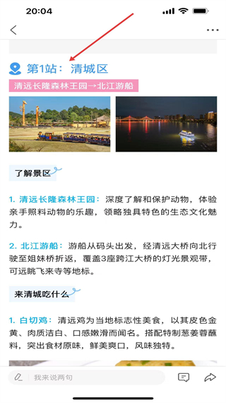 2、文旅清遠探景點板塊,介紹清城區長隆、北江游船景點,推薦白切雞美食,提供訂門票、找酒店服務,發布文旅資訊。