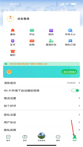 4、我的板塊,可登錄使用通知、評論等功能,有積分商城、緩存清理等設置,支持訂閱、投稿、邀請好友操作。