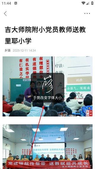 2、在資訊詳情頁面可手動調整字體大小優化閱讀體驗,查看資訊的配圖和文字介紹,了解送教活動的具體開展情況和參與主體。