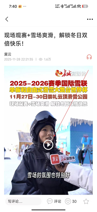 3、進入資訊詳情頁面閱讀內容了解活動信息,查看發布時間及閱讀量,點擊播放按鈕觀看附帶的視頻內容,獲取更直觀的資訊信息。