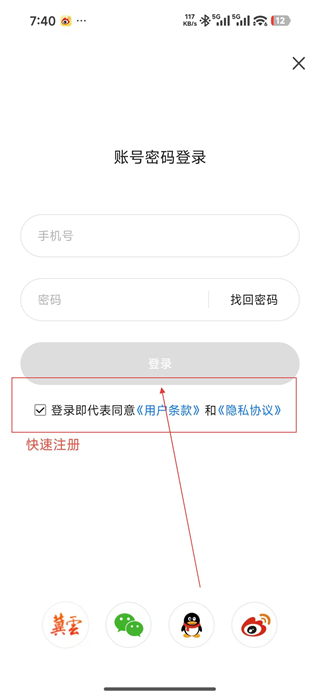1、打開冀云寧晉平臺進入賬號密碼登錄頁面,輸入手機號和密碼,勾選同意相關協議,點擊登錄按鈕完成賬號登錄。