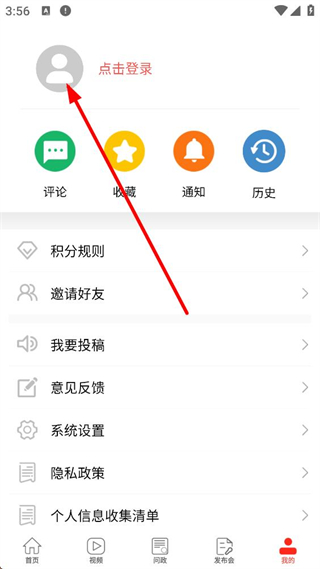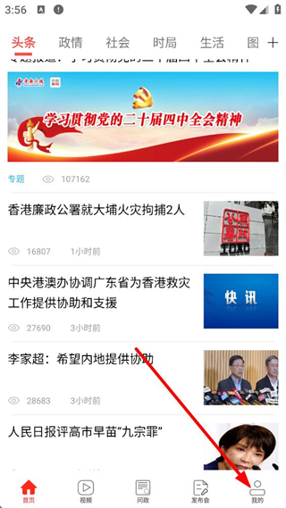 1、資訊平臺首頁可瀏覽頭條類資訊內容,包含不同領域的新聞,點擊底部我的可進入個人中心頁面,進行相關功能操作。