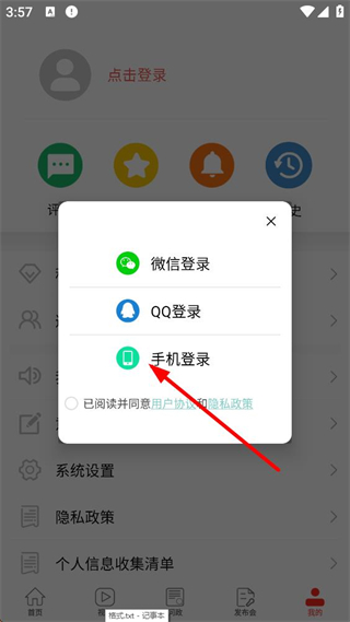 3、登錄選項彈窗提供微信QQ手機三種登錄方式,選擇手機登錄后,會進入對應的登錄信息填寫界面,需完成信息錄入。