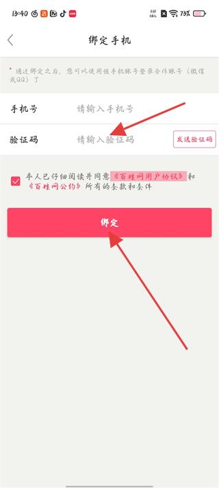 2、登錄后進入綁定手機頁面,輸入手機號和驗證碼,點擊綁定按鈕完成手機綁定,以便使用更多功能。