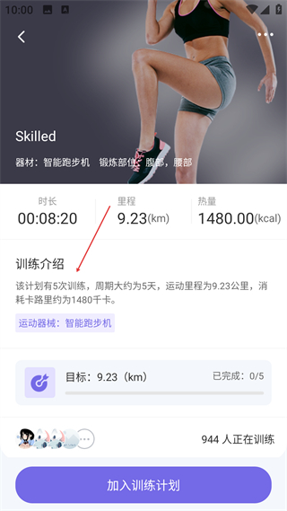 3、進入Skilled訓練計劃頁,查看時長里程等數據與訓練介紹,點擊加入訓練計劃,即可參與該訓練項目。