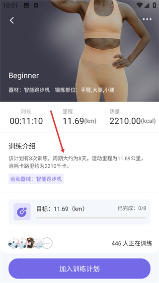 4、進入Beginner訓練計劃頁,了解其訓練次數周期等信息,點擊加入訓練計劃,可參與該新手適配的訓練。